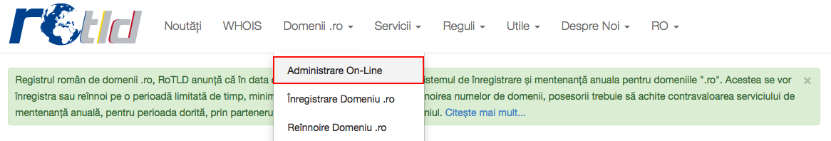 "Domenii .ro" > "Administrare On-Line"